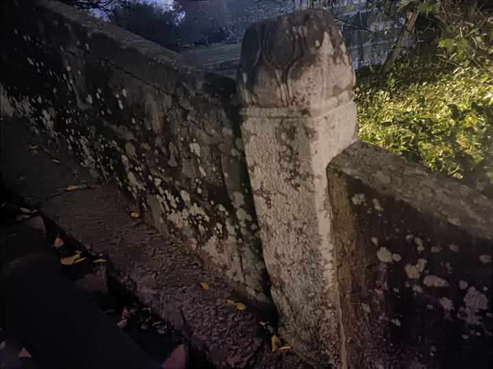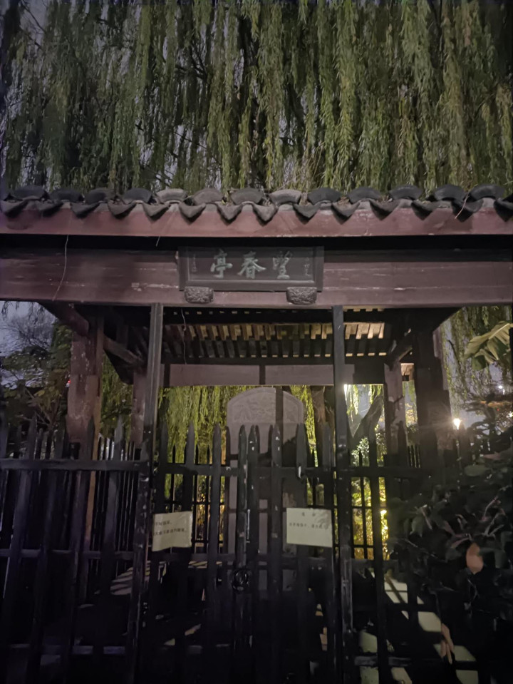 转身折返时,蓦然望见一座古凉亭——望春亭。想来是古时供过桥行人或候船者遮风避雨、短暂歇息之用。只因凉亭正在维修,四周被木栅栏围住,无法入内细看。据说亭内有一副清代楹联:“出城约十里而遥足力疲余于时处处,观水坐一桥之侧眼光沉浚对此茫茫”,生动再现了古人在亭中歇脚观桥的闲适心境。只可惜凉亭铁将军把门,今夜我无缘体验那份悠然。