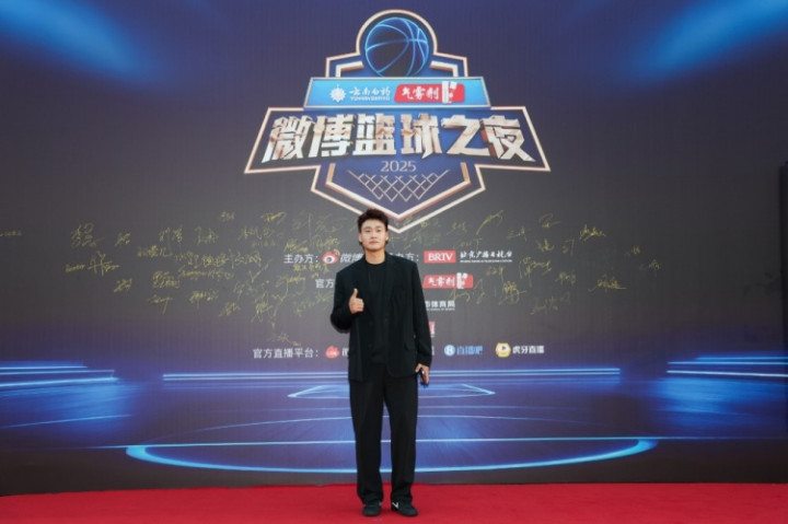 赵睿现身微博篮球之夜红毯! 一身黑西服帅气登场!