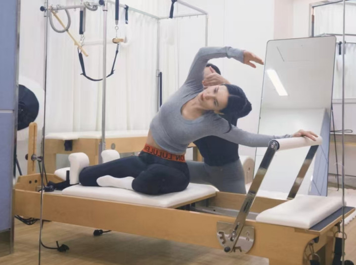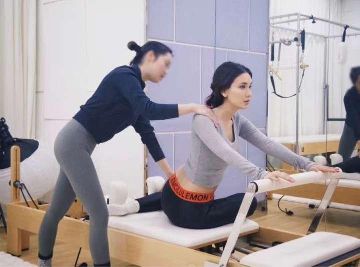 下图了,卢靖姗将长发随意束在脑后。她素颜出镜,皮肤好赞,脸蛋儿更是挑不出一点儿瑕疵,美的让人移不开眼。卢靖姗穿着修身款式运动上衣搭配紧身运动裤,正在坐运动的她全神贯注,分内养眼。