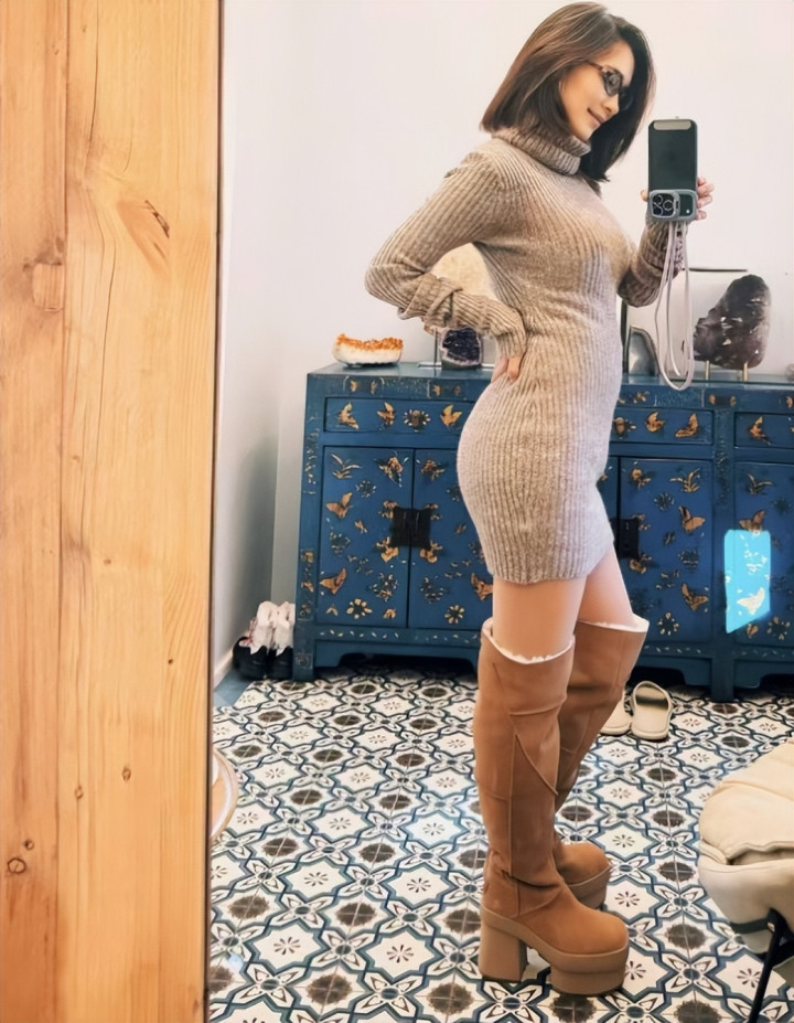 再往前看,卢靖姗产后首次晒出的近照里,她身穿贴身毛衣裙也是美得不得了。回看当日的照片,卢靖姗拿着手机拍下自己不同角度的美态,穿着紧身毛衣裙的她大大方方展示自己的产后曲线。虽然当时卢靖姗的腰腹部还没有完全恢复好,但也已经十分瘦了。没想到这才没过几天,卢靖姗竟然就瘦回了零赘肉的曲线,这恢复速度就问大家羡不羡慕!
