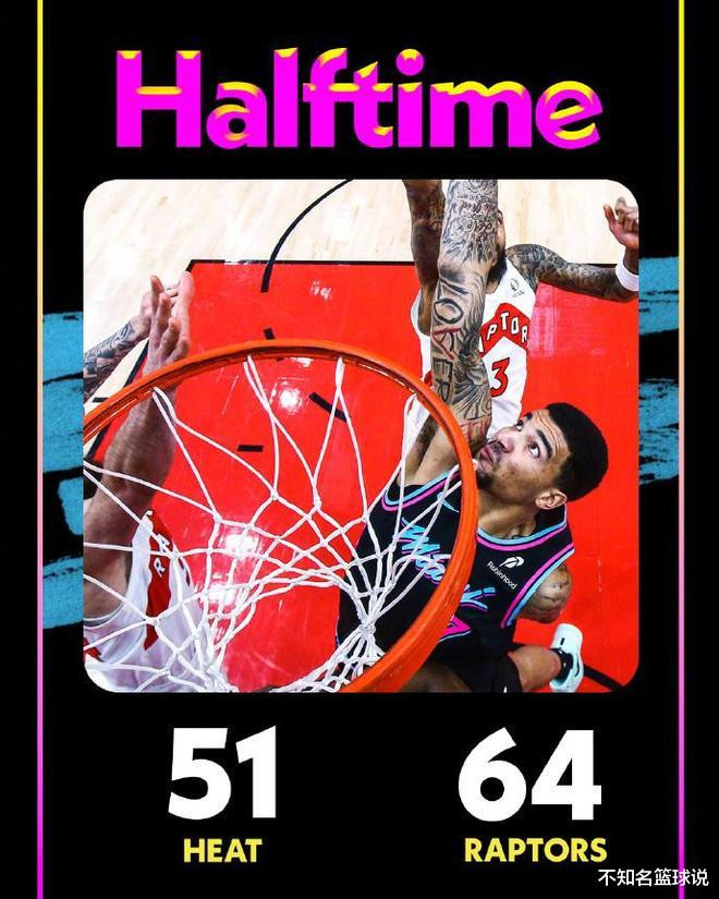 次节比赛,猛龙连续两节单节得分30+,且限制热火连续两节不足30分。热火率先一波9-2攻势反超2分,猛龙多点开花一波19-4攻势反超13分,猛龙随后持续压制热火,逐步扩大64-47领先优势。热火连追4分,猛龙单节32-24净胜8分,上半场结束猛龙64-51领先热火。前两节比赛,热火三分24中6,维金斯11分与阿德巴约6中1(三分5中0)仅得到4+6+2;猛龙三分15中7,英格拉姆15分与巴恩斯14分。