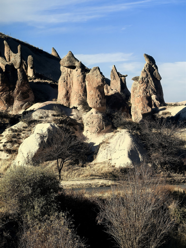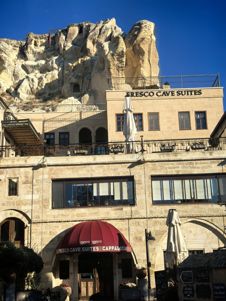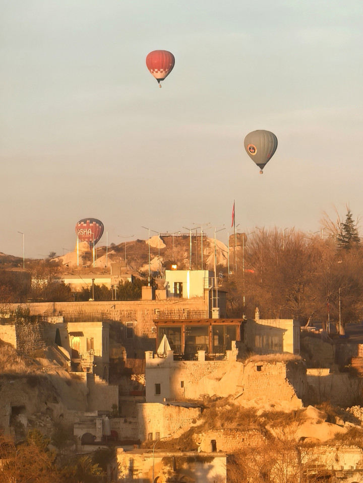 阳光渐渐浓烈起来,给岩壁镀上了一层暖色,那些凿空的岩洞在光影里变幻着形状。风从山谷里吹来,带着远古的气息,伸手触摸身旁粗糙的石壁,这里藏着赫梯人拓荒的足迹,藏着基督徒避难的岁月,也藏着奥斯曼时代的炊烟。现代电影镜头里的蒙太奇等艺术手法点石成金,赋予它们奇幻与浪漫的新生命。