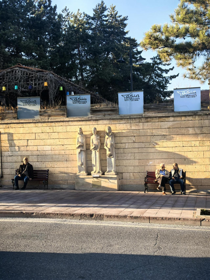 来到于尔居普小镇中心,相较于格雷梅街头的游人如织,这里更显从容闲适。沿街而立的房屋墙壁上爬满了青藤,雕花的木门边,穿着传统服饰的老人慢悠悠地喝着红茶。街头艺人抱着乐器坐在街角,悠扬的旋律在空气中流淌。街角的流浪猫蜷缩在阳光下,懒得挪动身体。