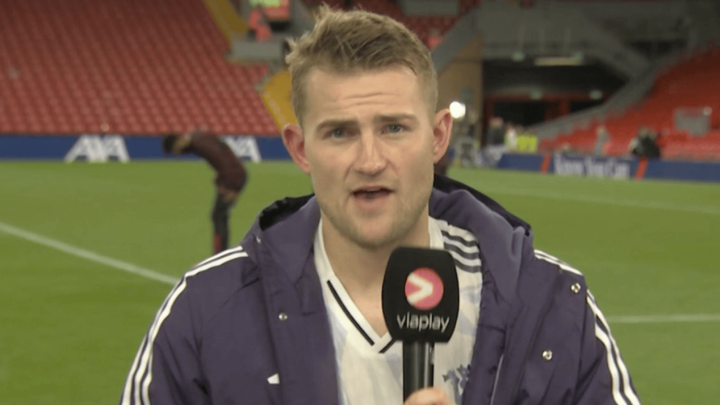 虎扑10月20日讯英超联赛,利物浦1-2曼联。赛后,曼联球员马泰斯-德里赫特接受俱乐部官方电视台采访。