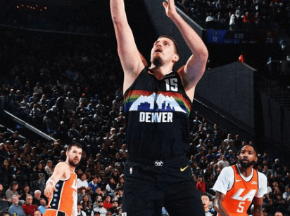 全场比赛,掘金中锋尼古拉-约基奇首发出战34分钟,23投18中,三分球6投5中,罚球16罚14中得到55分12篮板6助攻1抢断1封盖。