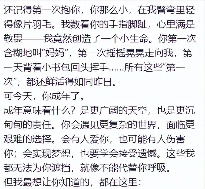 夕又米在文里写:“宝贝,你长大了,妈妈看着你从哇哇落地到现在独立闪耀,眼里满是骄傲。”
